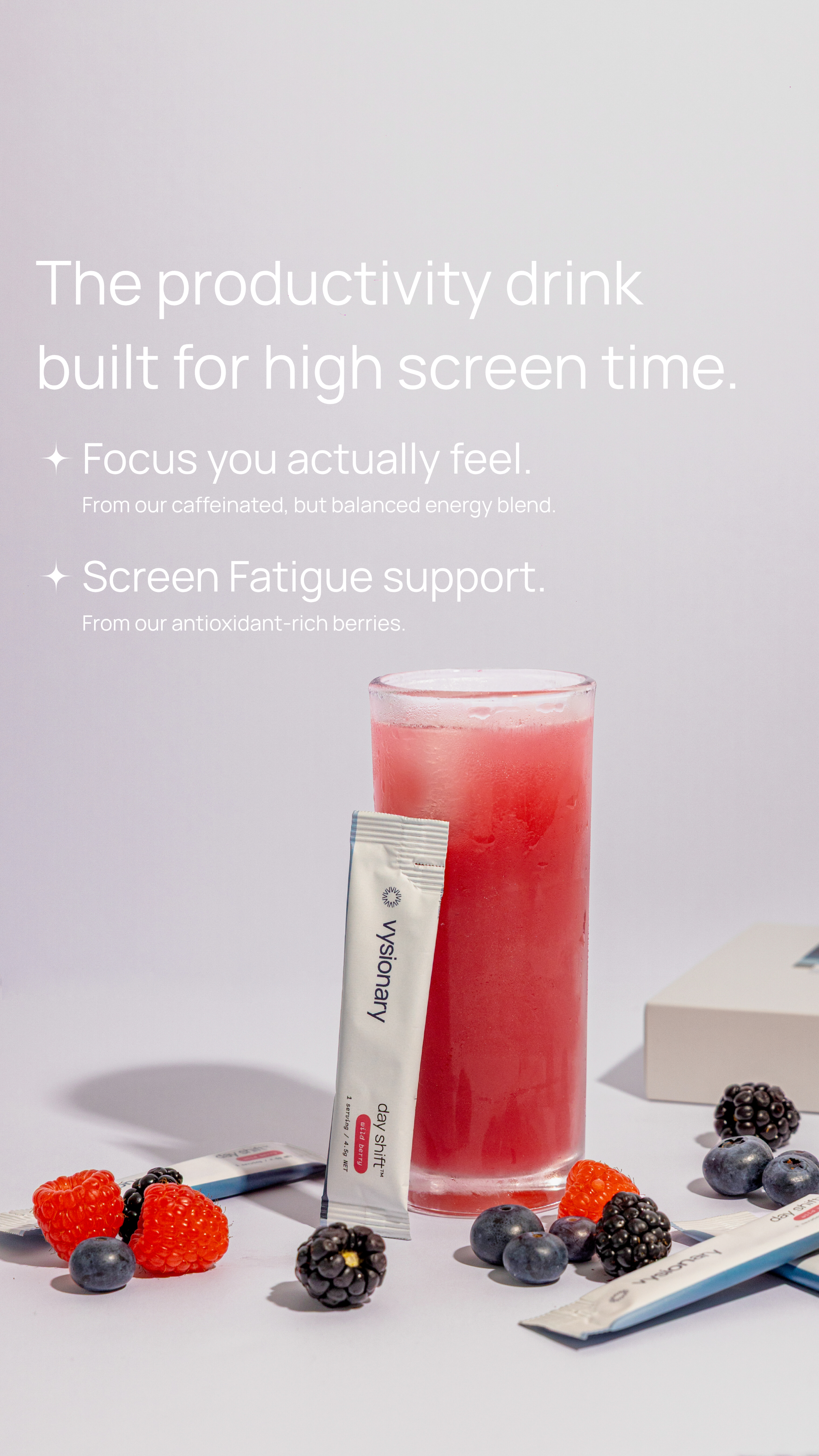 Our hero blend of four super berries. A source of anthocyanins & antioxidants, researched for their role in supporting eye health and overall vitality.